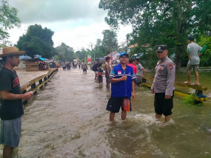“Akibat tingginya intensitas hujan, sungai Awang meluap, dan merendam jalan dan menyebabkan tersendatnya arus lalulintas,” ungkap Kapolsek.