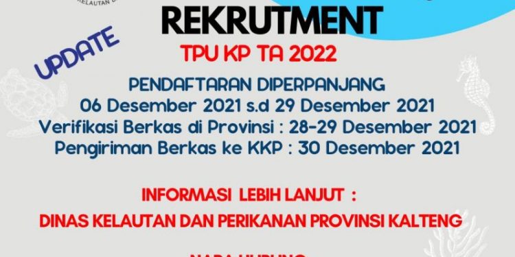 PALANGKA RAYA. Borneodaily.co.id – Kementrian Kelautan dan Perikanan melalui Dinas Kelautan dan Perikanan (Dislutkan) Provinsi Kalimantan Tengah memperpanjang rekrutmen Tenaga Pendamping Usaha (TPU) Kelautan dan Perikanan (KP) Tahun Anggaran 2022. Personil TPU KP yang direkrut akan menjalankan tugasnya selama 1 tahun pada tahun 2022. Kepala Dinas Kelautan dan Perikanan (Kadislutkan) Prov. Kalteng H.Darliansjah, di sela-sela kegiatannya di Aula Dislutkan setempat mengatakan, pendaftaran dan penyampaian berkas lamaran rekrutmen TPU KP ini melalui Dislutkan Prov. Kalteng sampai dengan 29 Desember 2021. Tahap verifikasi berkas pada 28-29 Desember 2021 dan pengiriman berkas lamaran yang lolos verifikasi ke KKP pada 30 Desember 2021. Informasi lebih lanjut dapat menghubungi Dislutkan Prov. Kalteng, dengan narahubung Silvia Irmayuti (08125080162) dan/atau Jimy (085249042456). Ditambahkan H.Darliansjah program rekrutmen ini merupakan pogram Kementerian Kelautan dan Perikanan dengan melibatkan Dinas Kelautan dan Perikanan Provinsi, sebagai salah satu program pemerintah untuk peningkatan kapasitas dan daya saing usaha. “Dalam melaksanakan tugasnya nanti personel TPU KP akan melakukan pendampingan kepada pelaku usaha KP dengan menjalankan layanan GISELA dalam rangka peningkatan kapasitas dan daya saing usaha,” imbuh H.Darliansjah yang gencar menggiatkan program shrimp estate di Kalteng, Senin (20/12). GISELA sendiri merupakan gerai yang bersifat dinamis dan bergerak (mobile), yang dijalankan oleh TPU KP untuk memberikan layanan usaha dan investasi kepada pelaku usaha KP dalam rangka meningkatkan kapasitas dan daya saing usaha. Penempatan TPU KP ini untuk tahun 2022 dikhususkan di Kabupaten Kotawaringin Barat dan Kabupaten Sukamara. (red)