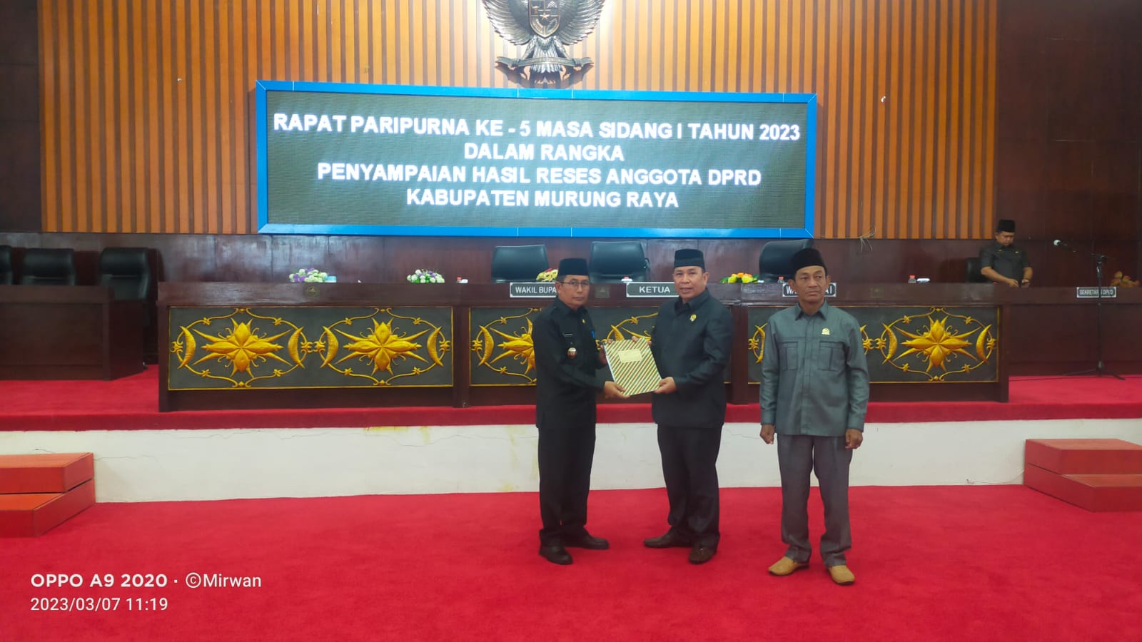 Puruk Cahu, BorneoDaily.co.id – Dewan Perwakilan Rakyat Daerah (DPRD) Kabupaten Murung Raya (Mura) melaksanakan Rapat Paripurna ke-5 Masa Sidang I tahun 2023 Dalam Rangka Penyampaian Hasil Reses Anggota DPRD Kabupaten Murung Raya, di Aula Paripurna DPRD Mura, Selasa (07/03/2023).