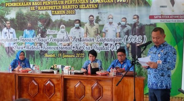 BUNTOK, BorneoDaily.co.id – Bupati Barito Selatan (Barsel), H. Eddy Raya Samsuri membuka secara langsung pembekalan sekaligus penyerahan surat keputusan pembagian Wilayah Kerja Penyuluh Pertanian (WKPP) Kabupaten Barito Selatan kepada penyuluh pertanian lapangan, bertempat di Aula Dinas Ketahanan Pangan, Pertanian dan Perikanan (DKP3) Kabupaten Barsel, Senin (17/1/2022).