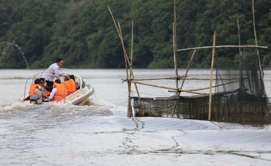 Gubernur Sugianto Sabran di dampingi Bupati Barito Selatan Eddy Raya Samsuri meninjau lokasi rencana pelaksanaan program pengembangan perikanan terintegritas dengan pariwisata, sembari menikmati panorama senja, rombongan menyusuri hampir seluruh area Danau Sadar menggunakan speed boat.
