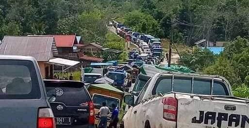 KUALA KURUN, Borneodaily.co.id – Akibat bebas lalu lalang kendaraan truk bertonase besar yang mengangkut batubara, kayu dan CPO melewati ruas Palangka Raya – Kuala Kurun, tepatnya di Desa Teluk Nyatu membuat kondisi jalan hancur dan rusak di daerah setempat.