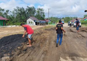 ”Kondisi jalan Kuala Kurun-Palangka Raya banyak yang berlubang dan berlumpur. Jadi personel kami bersama warga setempat bergotong royong memperbaiki ruas jalan yang berlubang tadi,” ucap Irwansah, baru-baru ini.