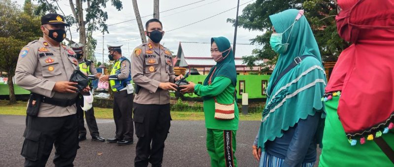 Dalam kesempatan tersebut selain membagikan nasi bungkus Polres Seruyan juga membagikan alat protokol kesehatan berupa masker kepada pekerja kebersihan untuk tetap laksanakan prokes.