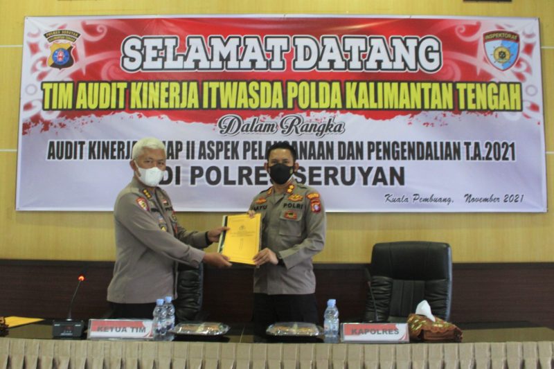 KUALA PEMBUANG, BorneoDaily.co.id – Kapolres Seruyan pimpin Penutupan Audit Kinerja Itwasda Polda Kalteng Tahap II TA.2021 Aspek Pelaksanaan dan Pengendalian pada Polres Seruyan dan Polsek Jajaran Polres Seruyan, Selasa (02/11/2021).