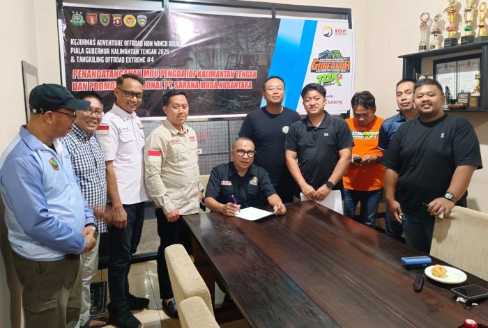 PALANGKA RAYA, Borneodaily.co.id – Pengurus Daerah Indonesia Off-road Federation (IOF) Kalimantan Tengah bersama PT Sarana Muda Nusantara (SMN) resmi menandatangani nota kesepahaman (MoU) terkait pelaksanaan Kejuaraan Nasional (Kejurnas) Adventure Offroad Non Winch Round 2 Piala Gubernur Kalteng 2026 serta Tangkiling Offroad Extreme #4.