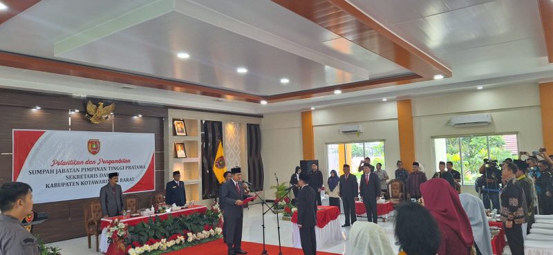 PANGKALAN BUN, borneodaily.co.id – Kepala Badan Kesbangpol Prov. Kalteng, Katma F. Dirun, menjadi saksi pada Pelantikan Rody Iskandar sebagai Pejabat Pimpinan Tinggi Pratama Sekretaris Daerah Kab. Kotawaringin Barat, di Aula “KYAI GEDE” Lantai II, Kantor Bupati Kotawaringin Barat, Jumat (1/3/2024).