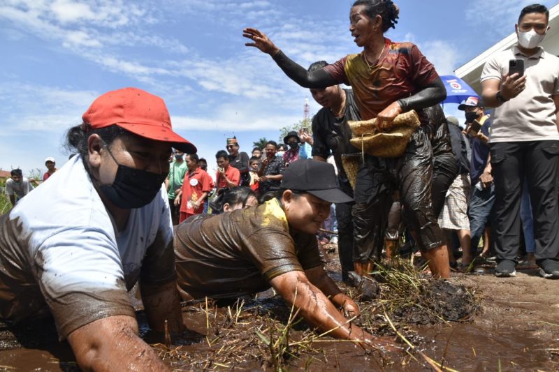 PALANGKA RAYA, BorneoDaily.co.id – Mangaruhi adalah tradisi budaya suku Dayak yang identik dengan teknik mencari atau menangkap ikan hanya dengan menggunakan tangan kosong di sebuah kolam berlumpur. Dalam serangkaian lomba FBIM tahun 2022 ini, lomba mangaruhi dilaksanakan di UPT. Taman Budaya Kalteng, Sabtu (21/5/2022).