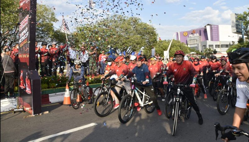 Kepala Staf Presiden RI Jenderal TNI (Pur.) Moeldoko melepas peserta di garis start di Bundaran Besar Palangka Raya.