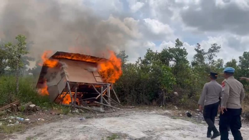 Selain mengamankan para tersangka, polisi juga memusnahkan dua bangunan semi permanen yang kerap digunakan sebagai pos pantau dan tempat transaksi narkoba. Pemusnahan bangunan dilakukan sebagai bentuk komitmen dalam memutus mata rantai peredaran narkotika di daerah tersebut.