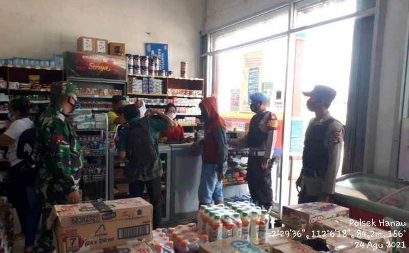 KUALA PEMBUANG, BorneoDaily.co.id – Personel Polsek Hanau Polres Seruyan terus lakukan kegiatan patroli sekaligus Operasi Yustisi Protokol Kesehatan covid-19 kepada warga yang beraktifitas di lokasi Pasar Tradisional Kecamatan Hanau Kabupaten Seruyan, Selasa (24/8/2021).