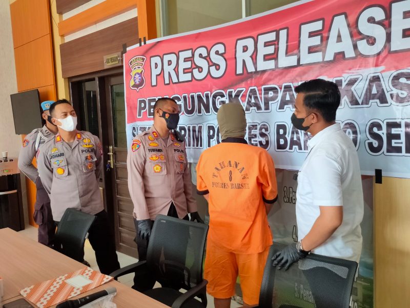 Kapolres Barsel AKBP Yusfandi Usman, S.I.K, M.I.K didampingi Kasat Reskrim Iptu M. Saladin dan Kabag Ops saat press release menyampaikan, kejadian bejat tersebut terjadi pada Kamis (28/4/2022) yang lalu, sekitar pukul 11.30 WIB di kantor tempat tersangka bertugas.