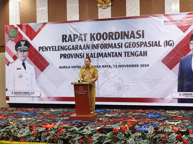 Staf Ahli Gubernur Kalteng Bidang Ekonomi, Keuangan dan Pembangunan Yuas Elko mewakili Plt. Sekda Prov. Kalteng membuka secara resmi Rapat Koordinasi Penyelenggaraan Informasi Geospasial Prov. Kalteng, bertempat di Aurila Hotel Palangka Raya, Selasa (12/11/2024). Foto : Ist