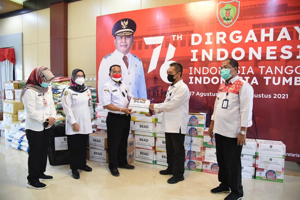 PALANGKA RAYA, BorneoDaily.co.id – Penjabat Sekretaris Daerah Kalimantan Tengah (Pj. Sekda Kalteng), H. Nuryakin atas nama Gubernur Kalteng, H. Sugianto Sabran menyerahkan secara simbolis kepada Pelaksana Tugas (Plt) Kepala Dinas Sosial Provinsi Kalteng, Farid Widji bantuan sosial (Bansos) yang berasal dari seluruh Organisasi Perangkat Daerah (OPD) Provinsi Kalteng bagi korban bencana banjir di Kabupaten Katingan dan Kotawaringin Timur bertempat di Loby kantor Gubernur, Rabu (8/9/2021)