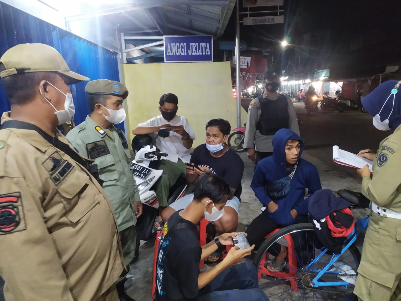 “Dalam Kegiatan Yustisi tadi kami masih menemukan orang tidak menggunakan masker, dan sudah kami berikan sangsi berupa teguran tertulis dan teguran Lisan,” tambahnya.