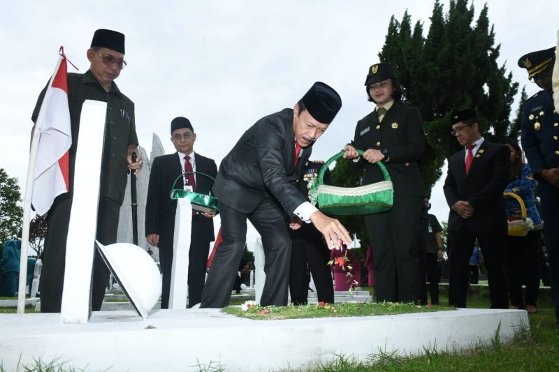 Upacara tersebut juga dihadiri TNI, Polri, pimpinan OPD, BUMD, BUMN, Karang Taruna, KNPI, PPM, DHD’45, Pepabri, Pramuka, anak sekolah, serta undangan lainnya. Upacara juga disertai dengan peletakan karangan bunga di Tugu Makam Pahlawan. Kemudian dilanjutkan dengan foto bersama. (RSP/DIS)