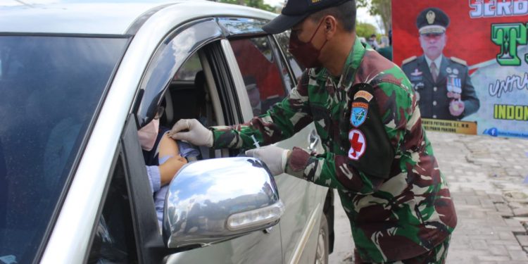 PALANGKA RAYA, BorneoDaily.co.id – Kodim 1016/Palangka Raya menggelar Vaksinasi Covid-19 secara Drive Thru. Kegiatan berpusat di Halaman Depan Hypermart Mall, jalan Yos Sudarso, Kota Palangka Raya, Kamis (18/11/2021) .