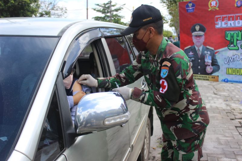“Vaksinasi dengan sistem drive thru ini cukup efektif menghindari potensi kerumunan massa dalam jumlah banyak, karena peserta tidak harus turun dari kendaraan,” kata Mayor Inf Slamet Dyanoor, Perwira Seksi Operasi (Pasi Ops) Kodim 1016/Palangka Raya.