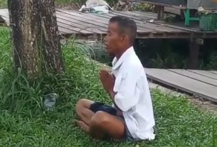 PALANGKA RAYA, borneodaily.co.id – Sebuah video viral di media sosial memperlihatkan seorang pria yang diketahui Orang Dengan Gangguan Jiwa (ODGJ) mengunakan celana pendek warna hitam dan kemeja putih sedang bertapa.